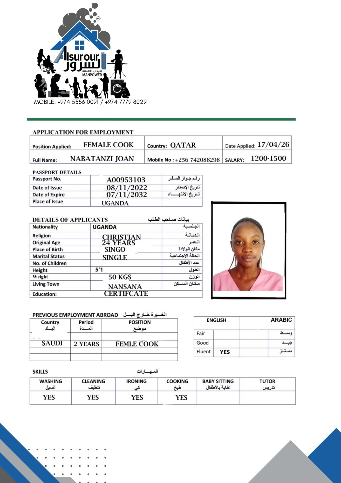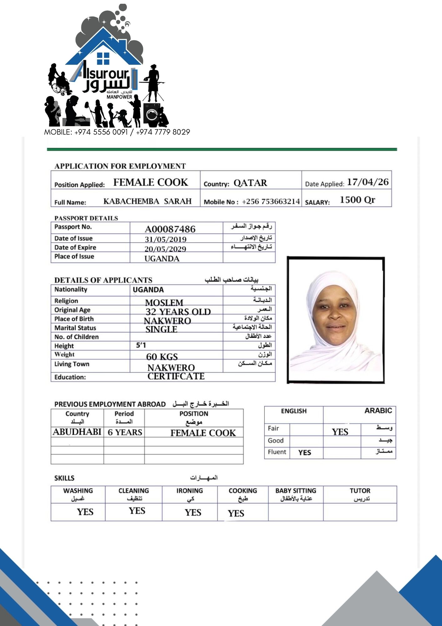 Welcome Are you looking for a driver, nurse, house manager, cleaner, nanny, secretary, professional workers for companies, security and guard personnel, foreman .... etc. Have you spent a long time looking for a maid? Have you made a great effort to find the right person? But to no avail ... Don't worry, we have the perfect solution to your problem Services…