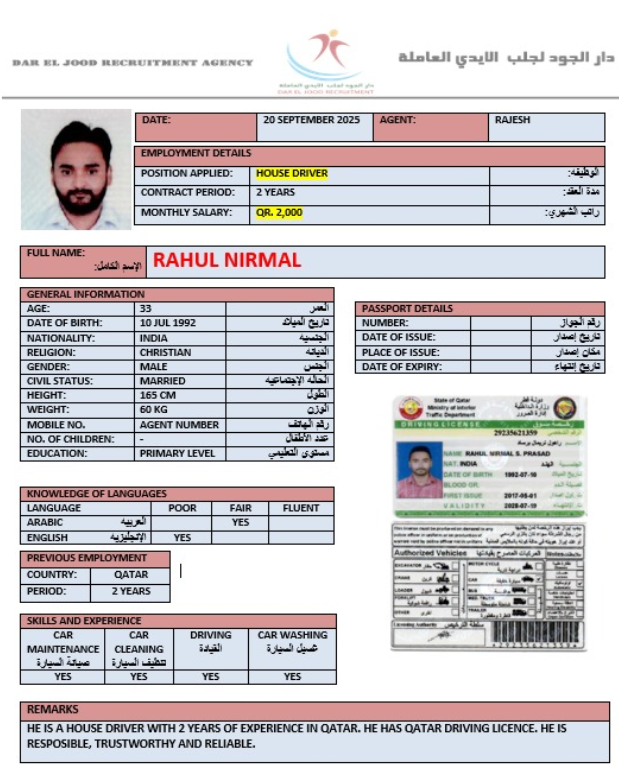 Name - English DRIVER RAHUL - RAHUL NIRMAL
