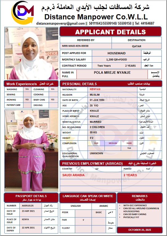 Welcome Are you looking for a driver, nurse, house manager, cleaner, nanny, secretary, professional workers for companies, security and guard personnel, foreman .... etc. Have you spent a long time looking for a maid? Have you made a great effort to find the right person? But to no avail ... Don't worry, we have the perfect solution to your problem Services…