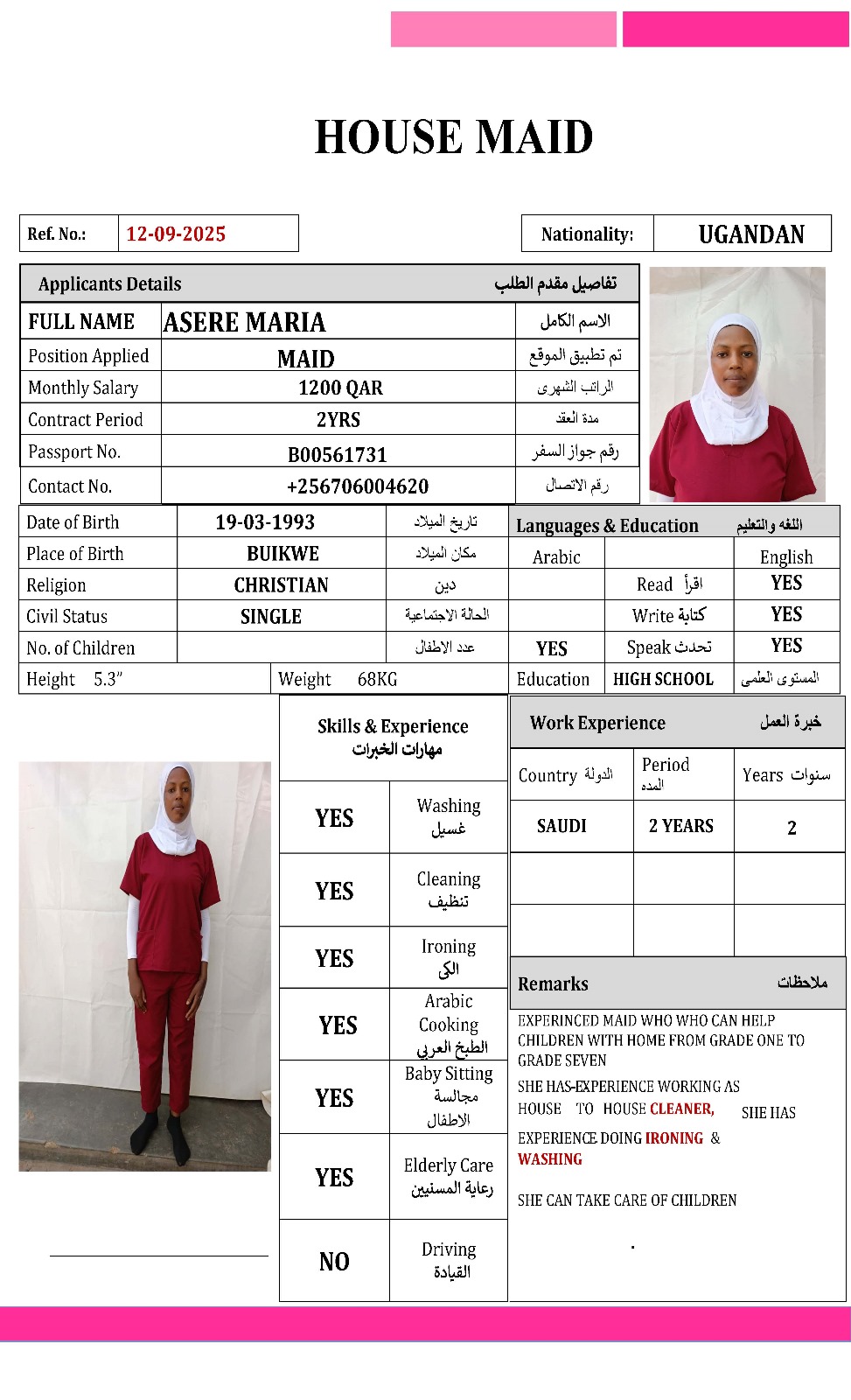 Welcome Are you looking for a driver, nurse, house manager, cleaner, nanny, secretary, professional workers for companies, security and guard personnel, foreman .... etc. Have you spent a long time looking for a maid? Have you made a great effort to find the right person? But to no avail ... Don't worry, we have the perfect solution to your problem Services…