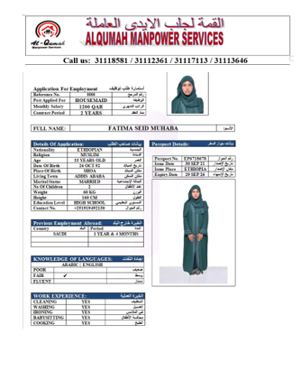 Welcome Are you looking for a driver, nurse, house manager, cleaner, nanny, secretary, professional workers for companies, security and guard personnel, foreman .... etc. Have you spent a long time looking for a maid? Have you made a great effort to find the right person? But to no avail ... Don't worry, we have the perfect solution to your problem Services…