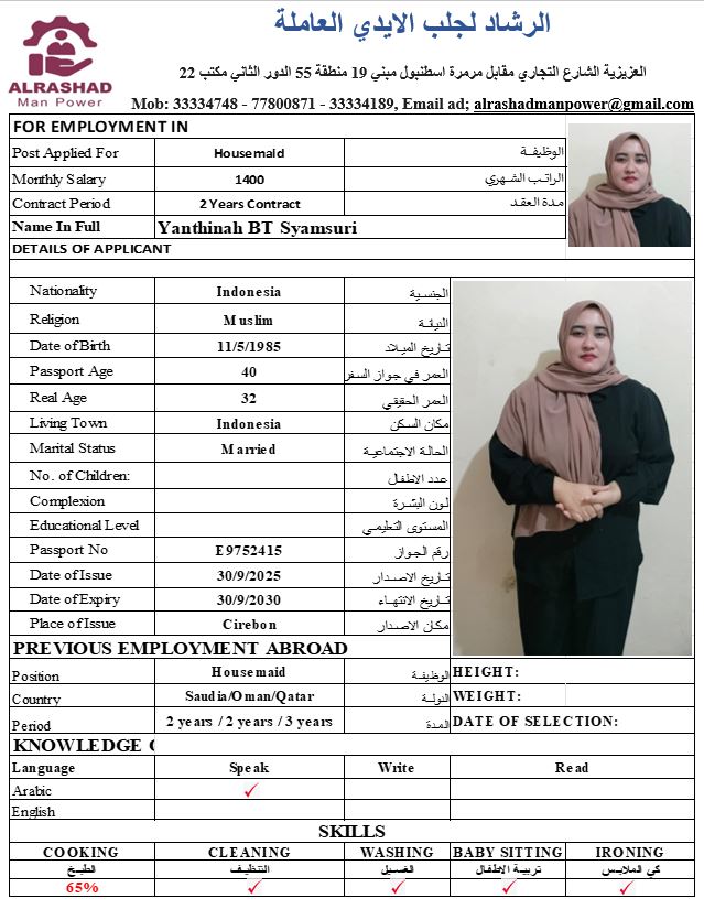 Welcome Are you looking for a driver, nurse, house manager, cleaner, nanny, secretary, professional workers for companies, security and guard personnel, foreman .... etc. Have you spent a long time looking for a maid? Have you made a great effort to find the right person? But to no avail ... Don't worry, we have the perfect solution to your problem Services…