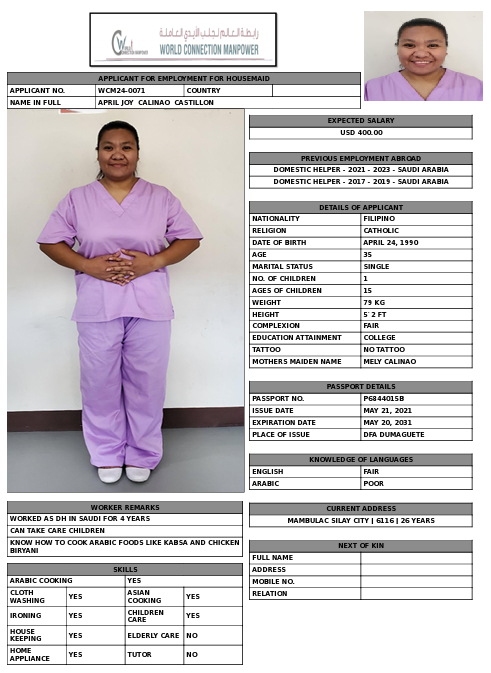 SHE HAVE EXPERIENCED 4 YEARS IN SAUDI