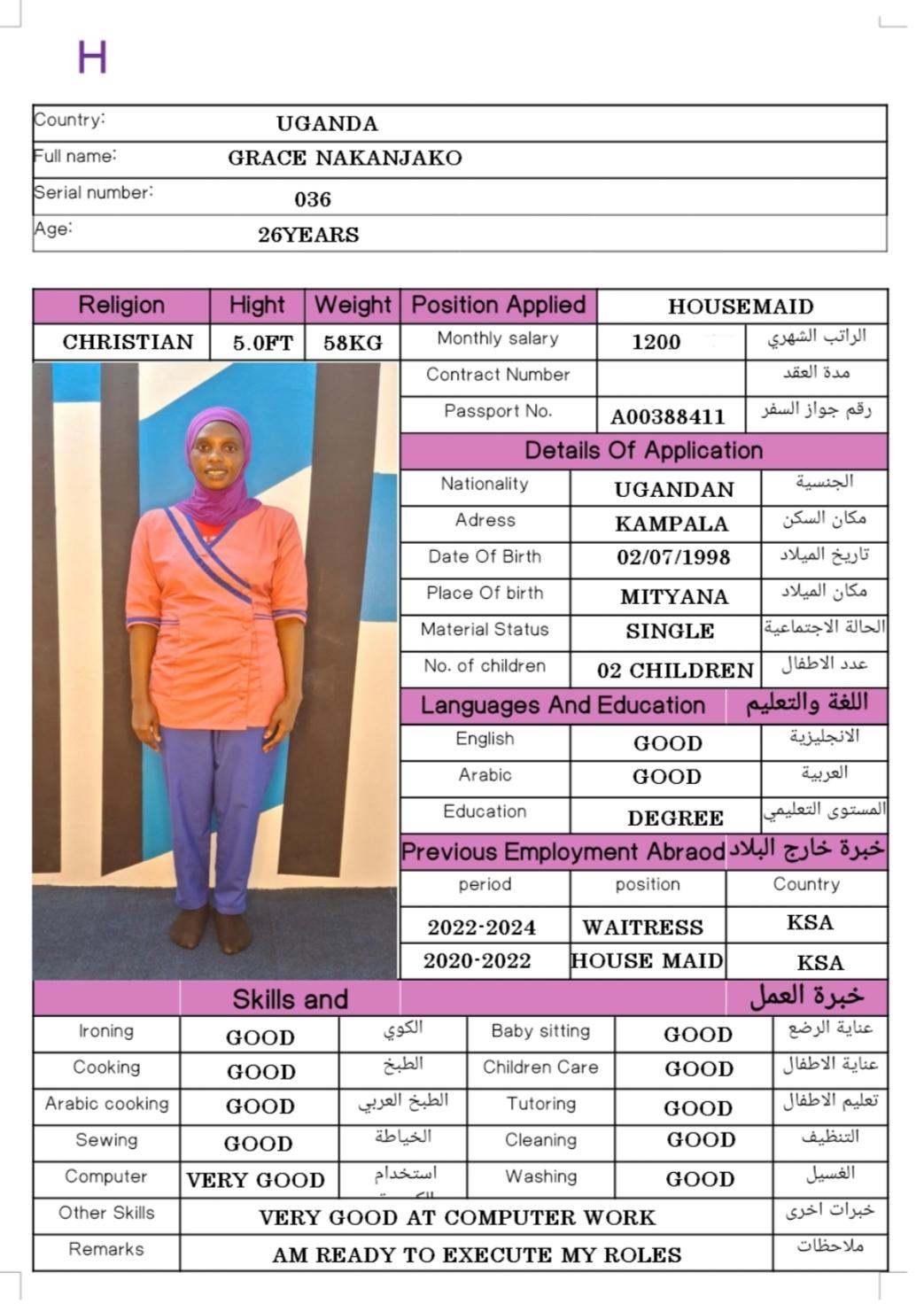 Name - English GRACE NAKANJAKO