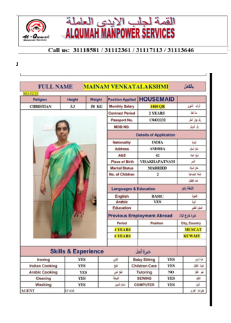 Welcome Are you looking for a driver, nurse, house manager, cleaner, nanny, secretary, professional workers for companies, security and guard personnel, foreman .... etc. Have you spent a long time looking for a maid? Have you made a great effort to find the right person? But to no avail ... Don't worry, we have the perfect solution to your problem Services…