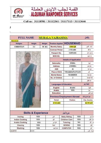 Welcome Are you looking for a driver, nurse, house manager, cleaner, nanny, secretary, professional workers for companies, security and guard personnel, foreman .... etc. Have you spent a long time looking for a maid? Have you made a great effort to find the right person? But to no avail ... Don't worry, we have the perfect solution to your problem Services…