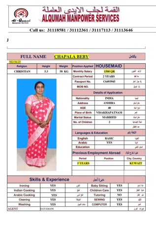 Welcome Are you looking for a driver, nurse, house manager, cleaner, nanny, secretary, professional workers for companies, security and guard personnel, foreman .... etc. Have you spent a long time looking for a maid? Have you made a great effort to find the right person? But to no avail ... Don't worry, we have the perfect solution to your problem Services…