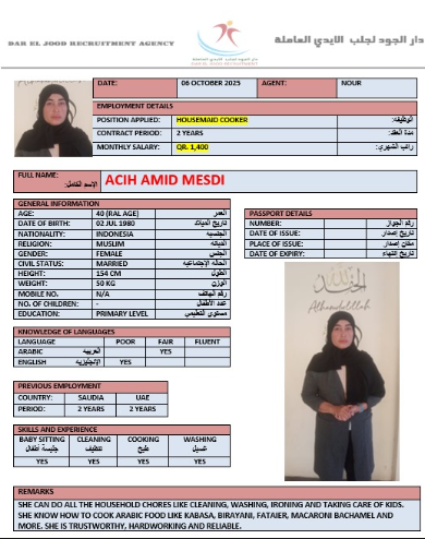Welcome Are you looking for a driver, nurse, house manager, cleaner, nanny, secretary, professional workers for companies, security and guard personnel, foreman .... etc. Have you spent a long time looking for a maid? Have you made a great effort to find the right person? But to no avail ... Don't worry, we have the perfect solution to your problem Services…