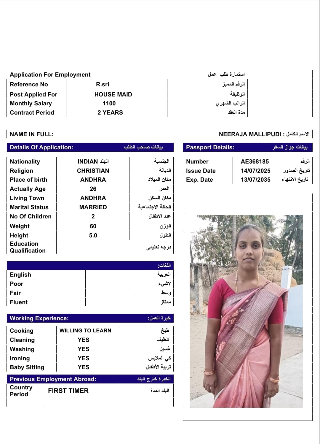 Name - English NEERAJA MALLIPUDI / AVAILABLE IN DOHA