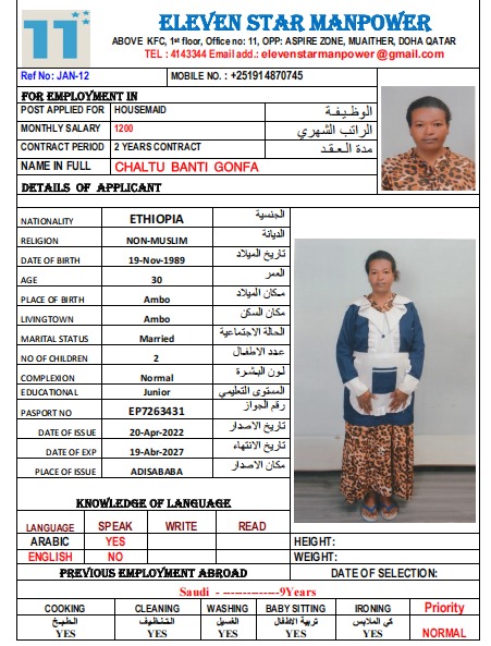 Salary 1200 QR QAR