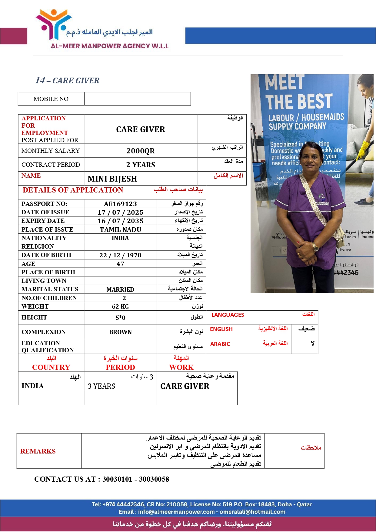 Welcome Are you looking for a driver, nurse, house manager, cleaner, nanny, secretary, professional workers for companies, security and guard personnel, foreman .... etc. Have you spent a long time looking for a maid? Have you made a great effort to find the right person? But to no avail ... Don't worry, we have the perfect solution to your problem Services…