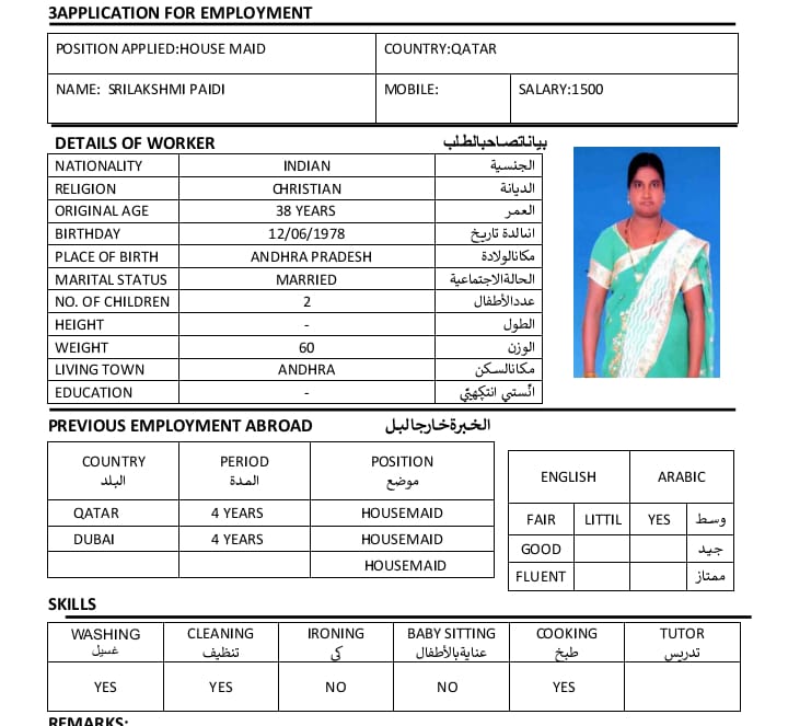 | Job | Domestic worker |