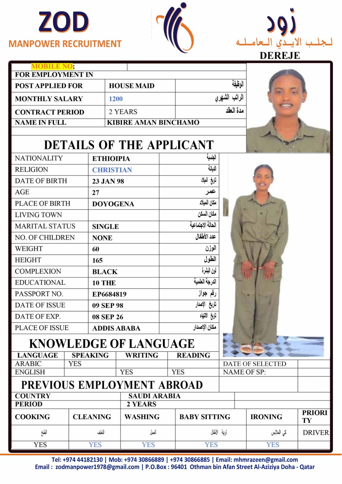 Name - English KIBIRE AMAN BINCHAMO