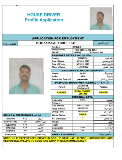 Welcome Are you looking for a driver, nurse, house manager, cleaner, nanny, secretary, professional workers for companies, security and guard personnel, foreman .... etc. Have you spent a long time looking for a maid? Have you made a great effort to find the right person? But to no avail ... Don't worry, we have the perfect solution to your problem Services…
