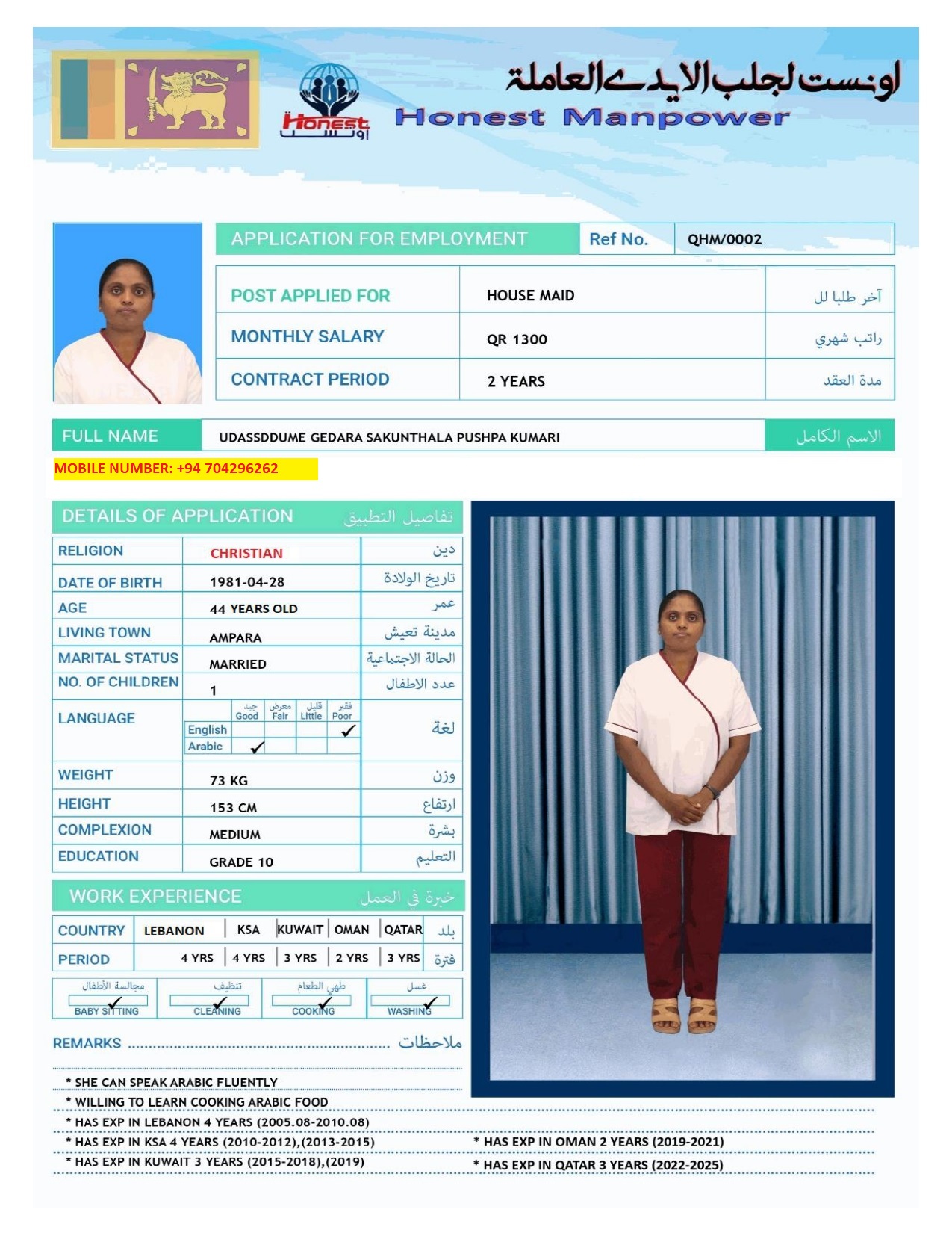 Name | SAKUNTHALA PUSHPA KUMARI |