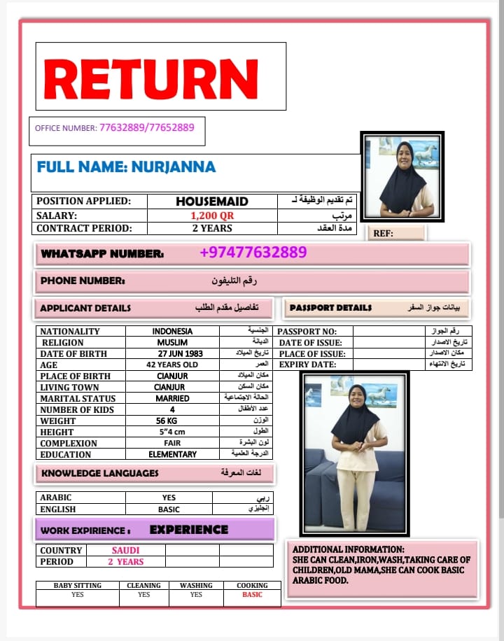 Welcome Are you looking for a driver, nurse, house manager, cleaner, nanny, secretary, professional workers for companies, security and guard personnel, foreman .... etc. Have you spent a long time looking for a maid? Have you made a great effort to find the right person? But to no avail ... Don't worry, we have the perfect solution to your problem Services…