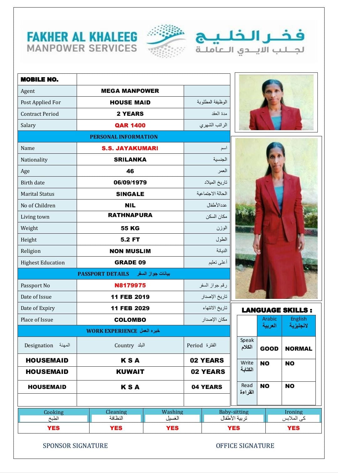 Welcome Are you looking for a driver, nurse, house manager, cleaner, nanny, secretary, professional workers for companies, security and guard personnel, foreman .... etc. Have you spent a long time looking for a maid? Have you made a great effort to find the right person? But to no avail ... Don't worry, we have the perfect solution to your problem Services…