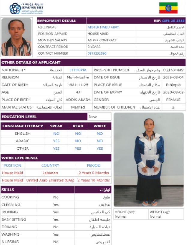 Name - English MISTER HAILU ABAY