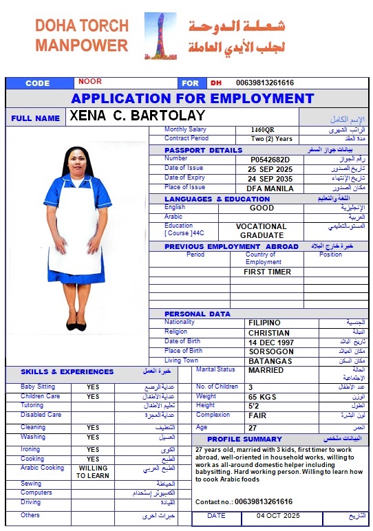 Email DOHATORCHMANPOWER@GMAIL.COM