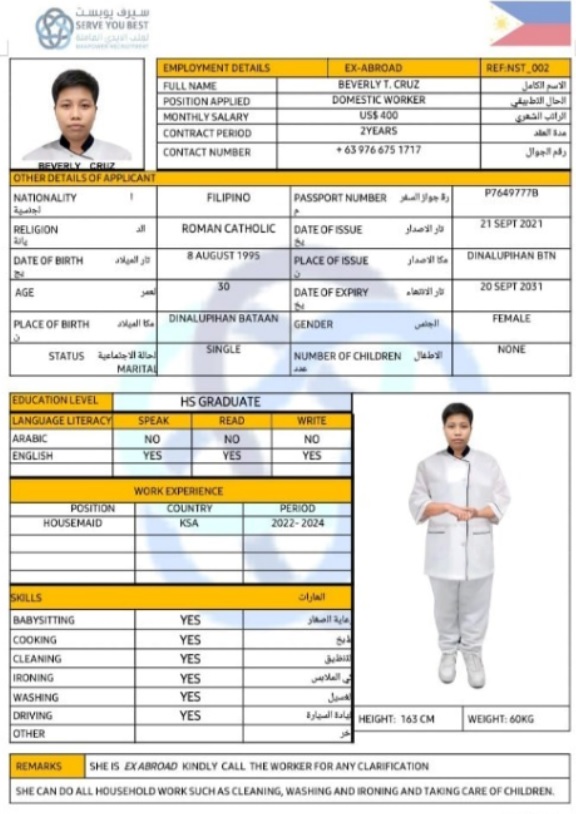 Welcome Are you looking for a driver, nurse, house manager, cleaner, nanny, secretary, professional workers for companies, security and guard personnel, foreman .... etc. Have you spent a long time looking for a maid? Have you made a great effort to find the right person? But to no avail ... Don't worry, we have the perfect solution to your problem Services…