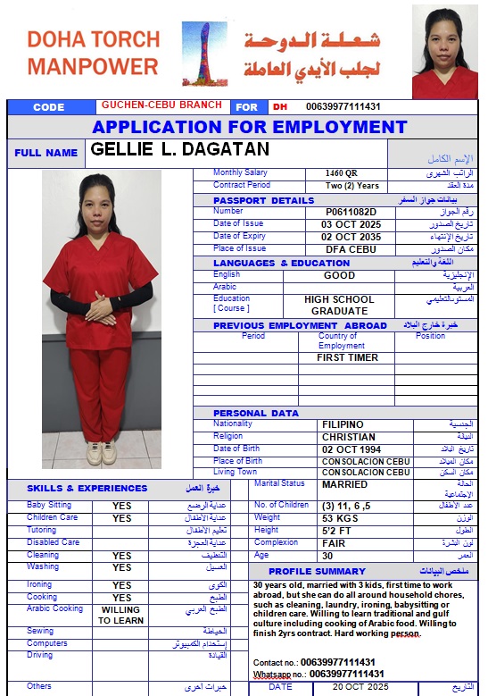 Name - English GELLIE L DAGATAN