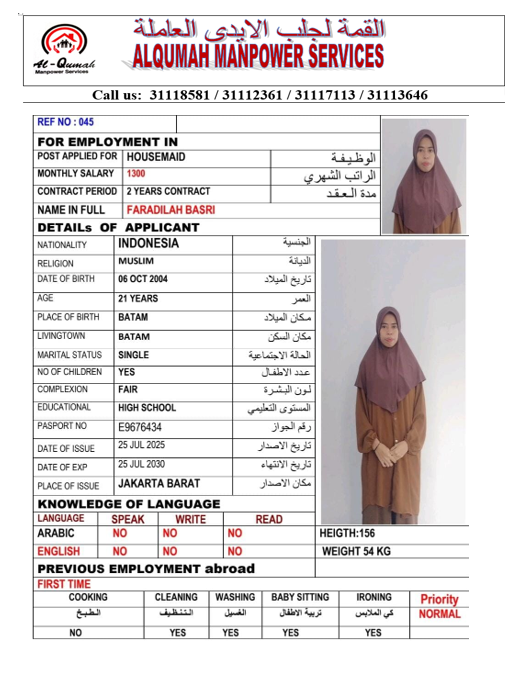 Welcome Are you looking for a driver, nurse, house manager, cleaner, nanny, secretary, professional workers for companies, security and guard personnel, foreman .... etc. Have you spent a long time looking for a maid? Have you made a great effort to find the right person? But to no avail ... Don't worry, we have the perfect solution to your problem Services…