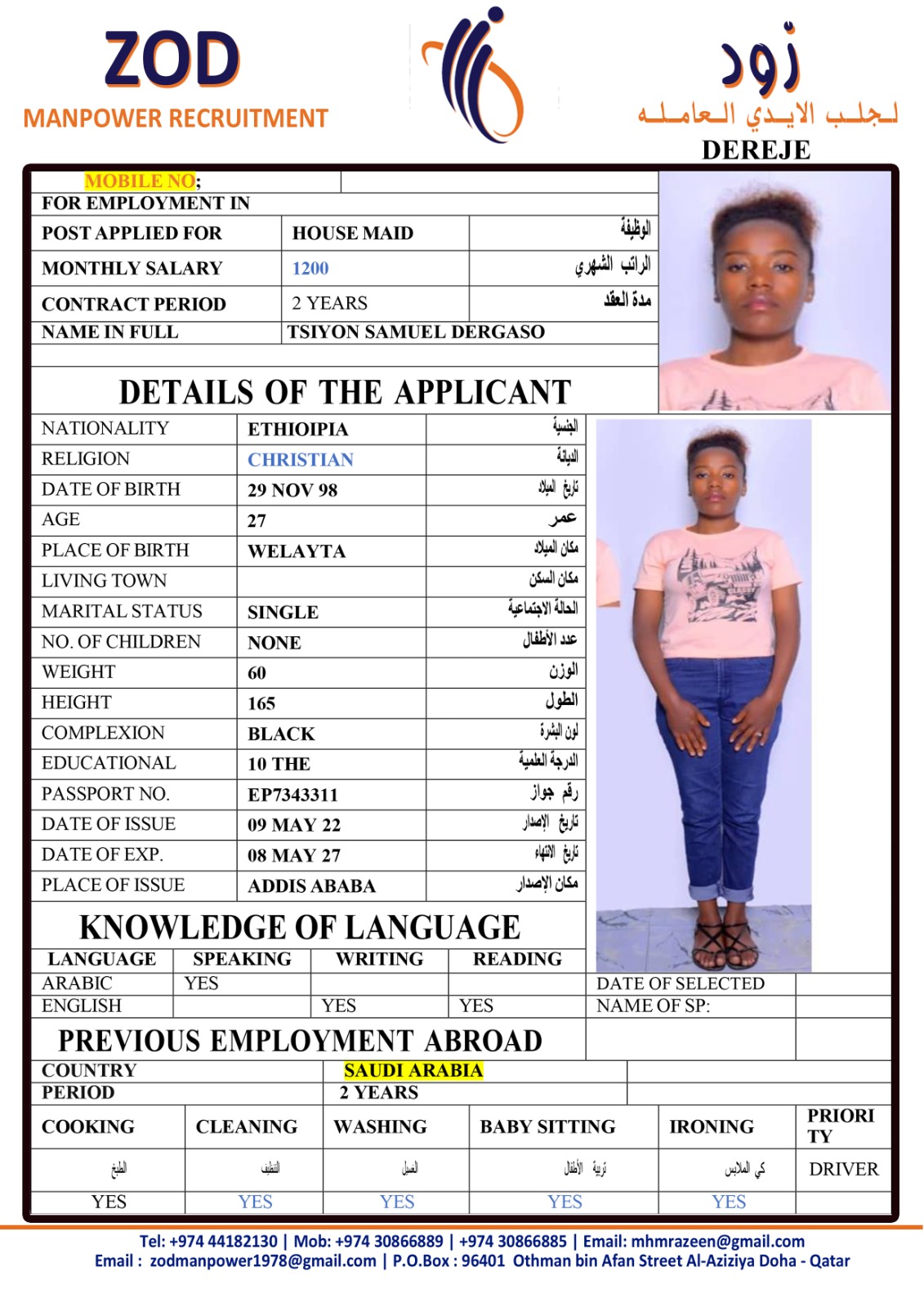 Name - English TSIYON SAMUEL DERGASO