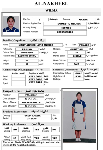 Name - English MARY ANN ECHAVIA MUMAR
