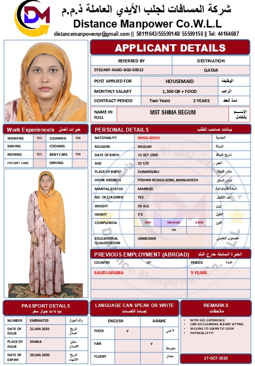 Welcome Are you looking for a driver, nurse, house manager, cleaner, nanny, secretary, professional workers for companies, security and guard personnel, foreman .... etc. Have you spent a long time looking for a maid? Have you made a great effort to find the right person? But to no avail ... Don't worry, we have the perfect solution to your problem Services…