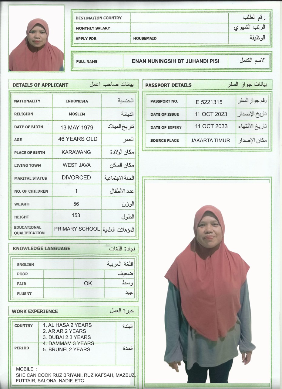 Name - English ENAN NUNINGSIH BT JUHANDI PISI
