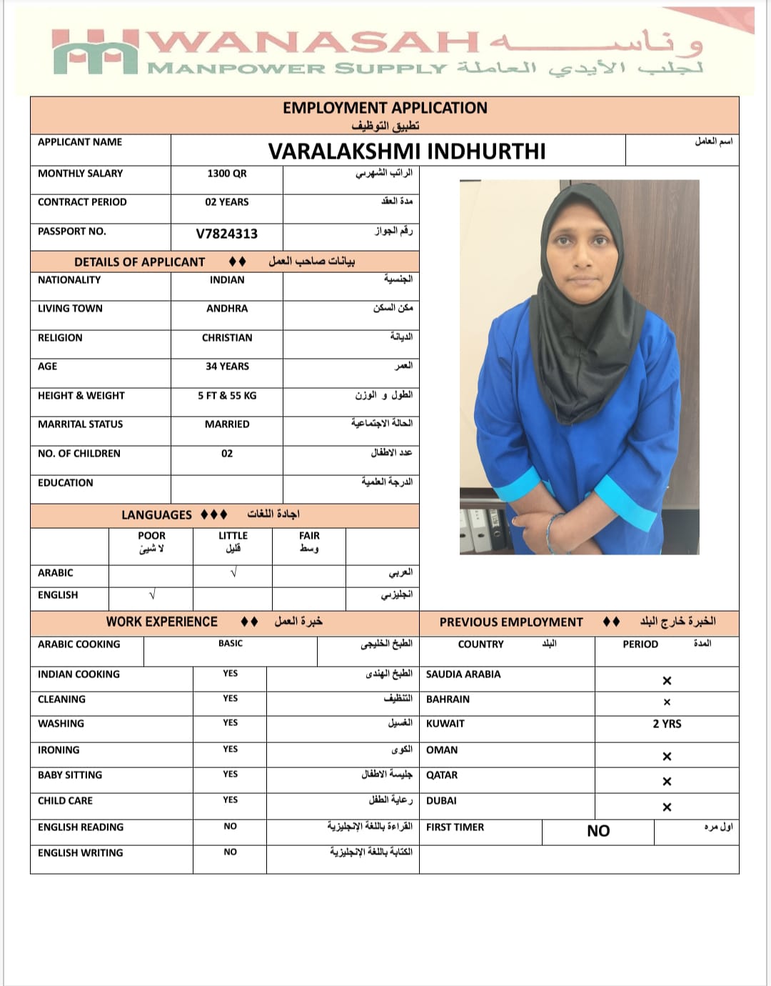 Name - English VARALAKSHMI INDHURTHI / AVAILABLE IN DOHA