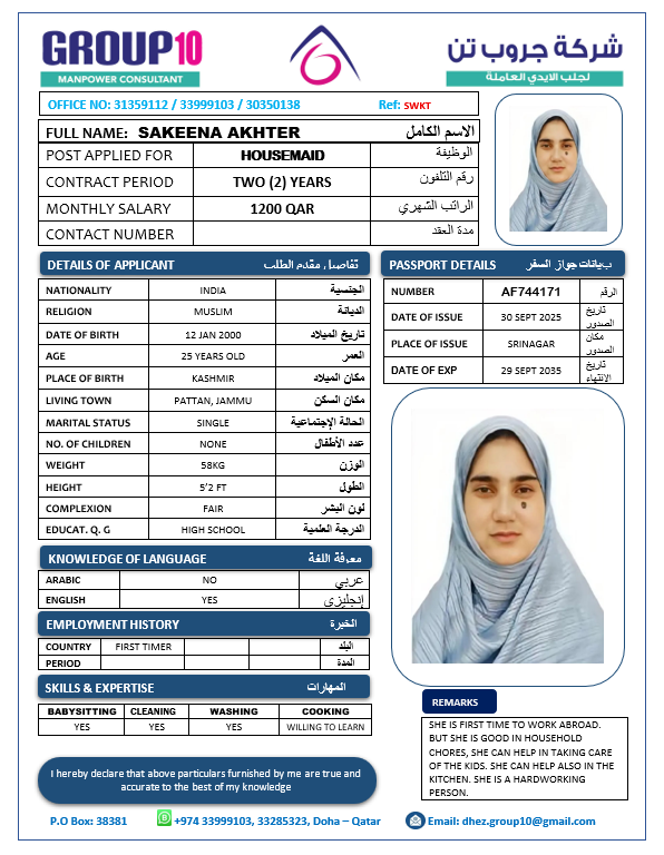 Welcome Are you looking for a driver, nurse, house manager, cleaner, nanny, secretary, professional workers for companies, security and guard personnel, foreman .... etc. Have you spent a long time looking for a maid? Have you made a great effort to find the right person? But to no avail ... Don't worry, we have the perfect solution to your problem Services…