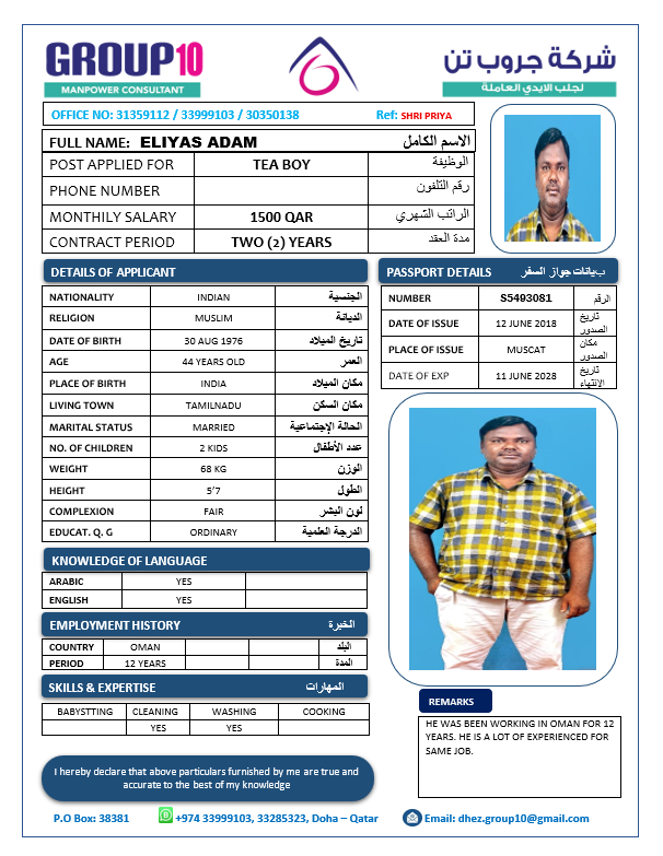 Name - English ELIYAS ADAM