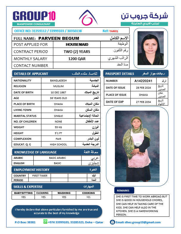 Name - English PARVEEN BEGUM