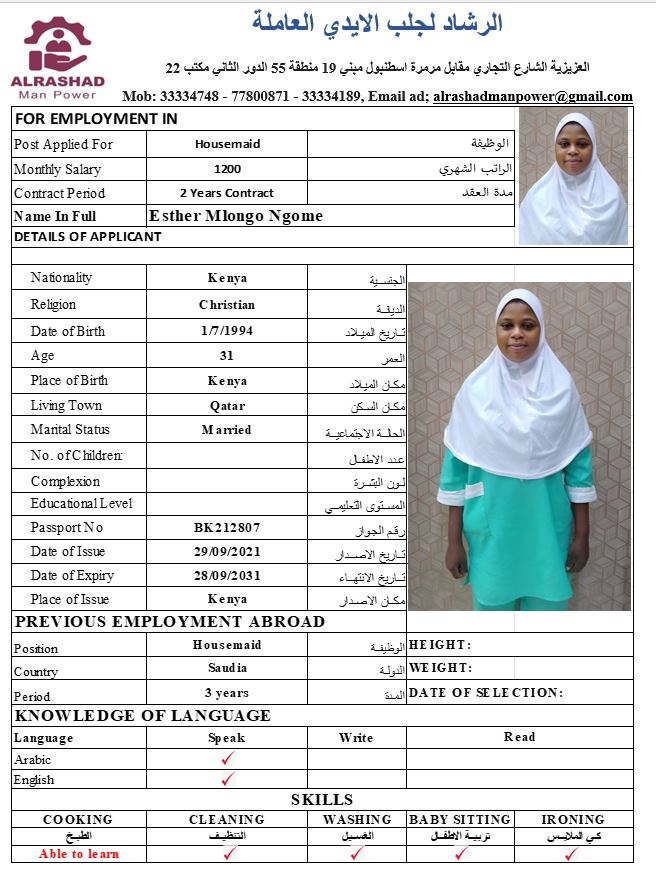 Name - English ESTHER NGOME
