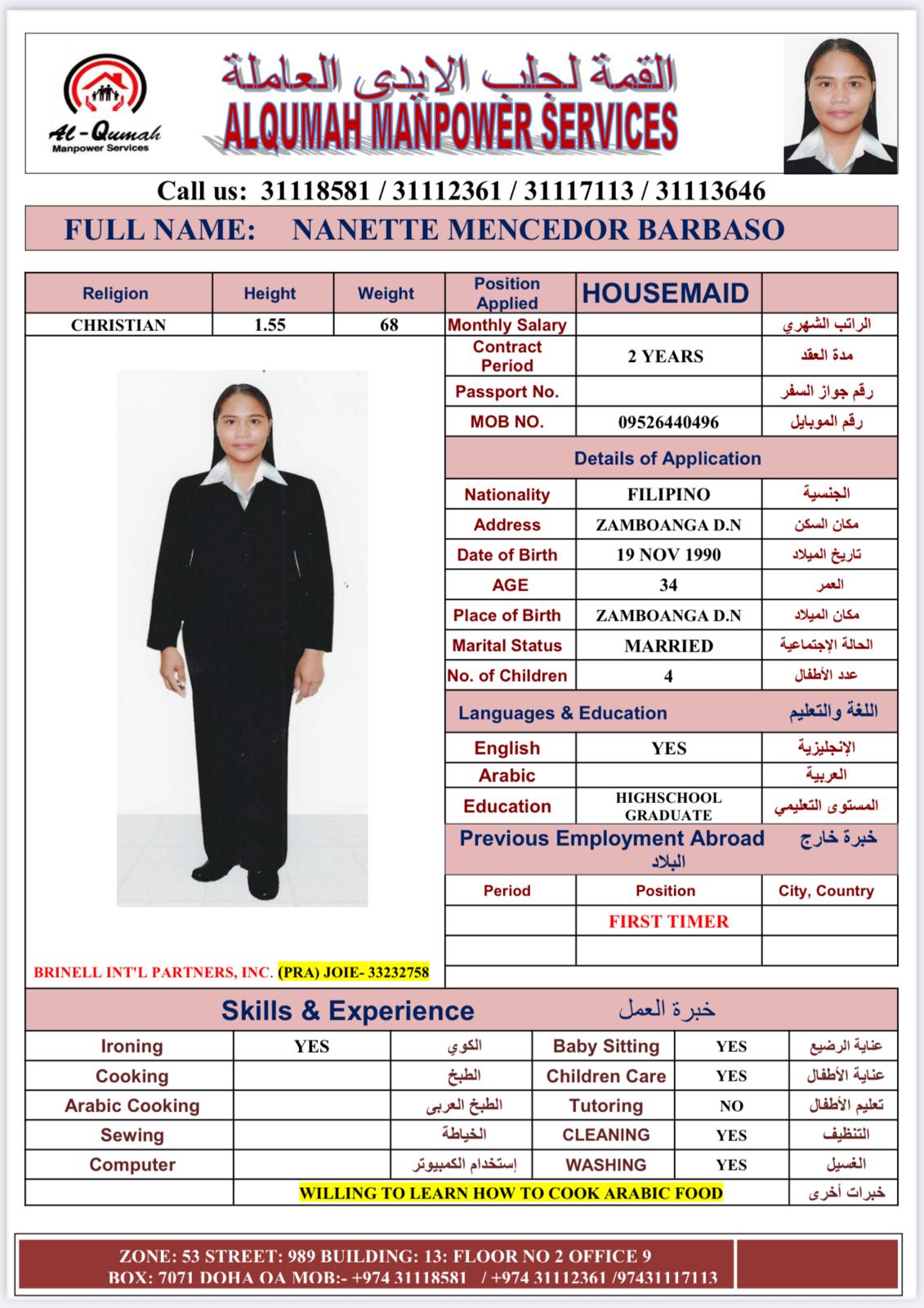 Welcome Are you looking for a driver, nurse, house manager, cleaner, nanny, secretary, professional workers for companies, security and guard personnel, foreman .... etc. Have you spent a long time looking for a maid? Have you made a great effort to find the right person? But to no avail ... Don't worry, we have the perfect solution to your problem Services…