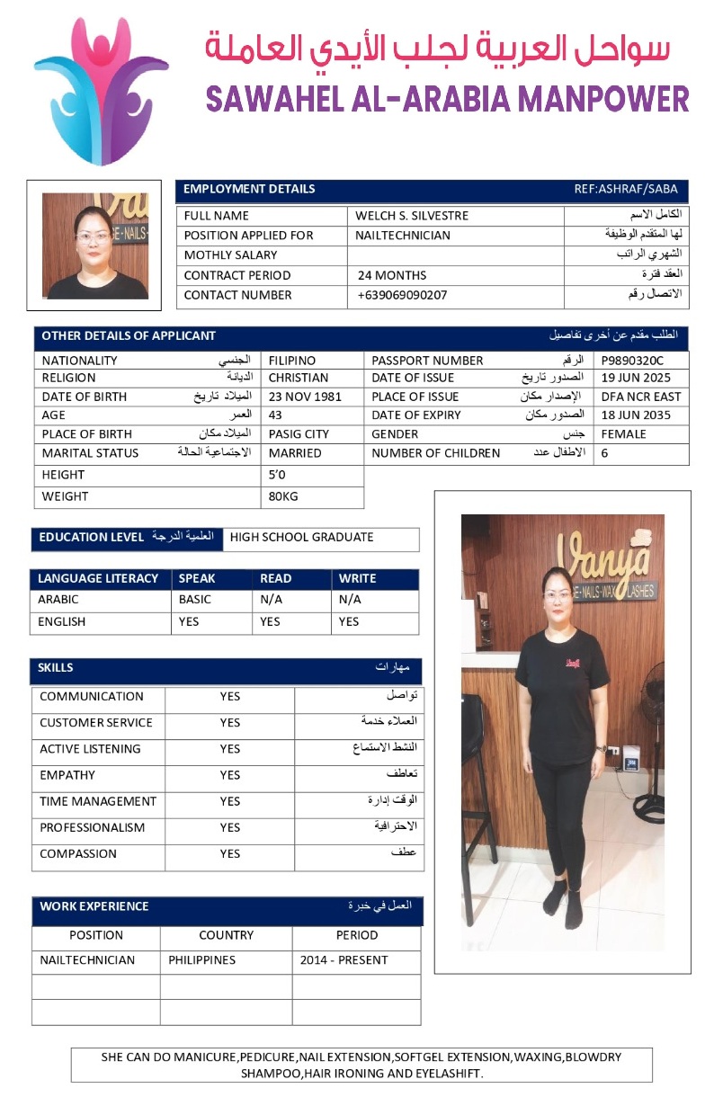 Welcome Are you looking for a driver, nurse, house manager, cleaner, nanny, secretary, professional workers for companies, security and guard personnel, foreman .... etc. Have you spent a long time looking for a maid? Have you made a great effort to find the right person? But to no avail ... Don't worry, we have the perfect solution to your problem Services…