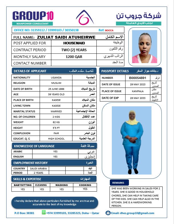 Name - English ZULIAT SAIDI ATUHEIRWE