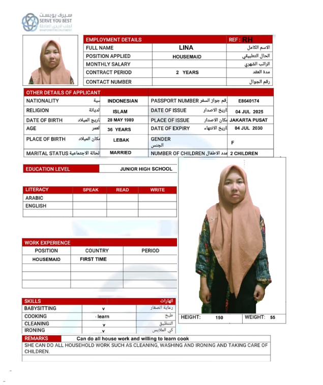 Welcome Are you looking for a driver, nurse, house manager, cleaner, nanny, secretary, professional workers for companies, security and guard personnel, foreman .... etc. Have you spent a long time looking for a maid? Have you made a great effort to find the right person? But to no avail ... Don't worry, we have the perfect solution to your problem Services…