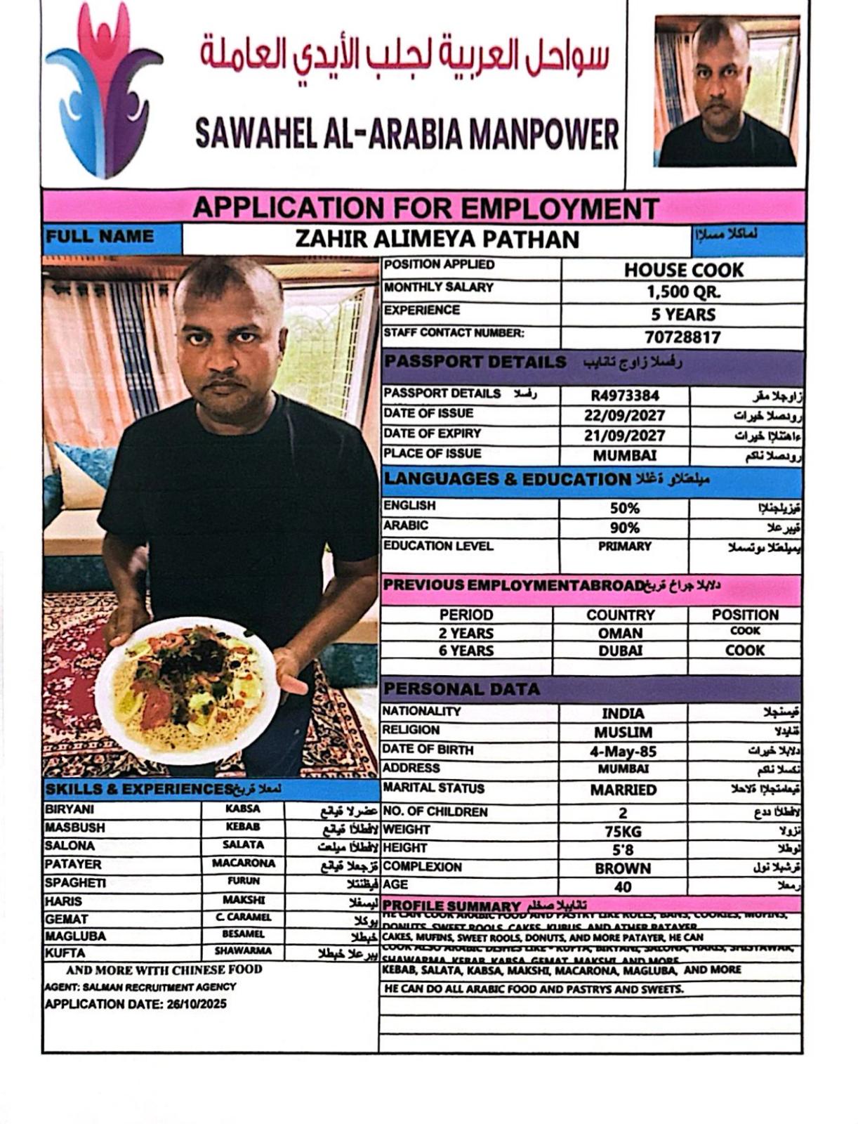 He knows how to cook plenty of menu in arabic food