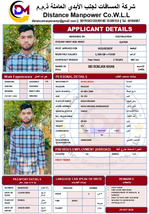 Welcome Are you looking for a driver, nurse, house manager, cleaner, nanny, secretary, professional workers for companies, security and guard personnel, foreman .... etc. Have you spent a long time looking for a maid? Have you made a great effort to find the right person? But to no avail ... Don't worry, we have the perfect solution to your problem Services…