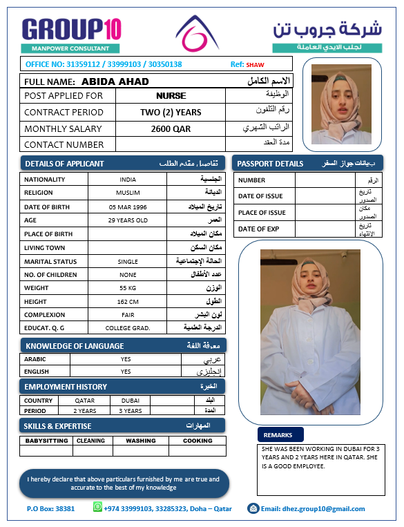 Welcome Are you looking for a driver, nurse, house manager, cleaner, nanny, secretary, professional workers for companies, security and guard personnel, foreman .... etc. Have you spent a long time looking for a maid? Have you made a great effort to find the right person? But to no avail ... Don't worry, we have the perfect solution to your problem Services…