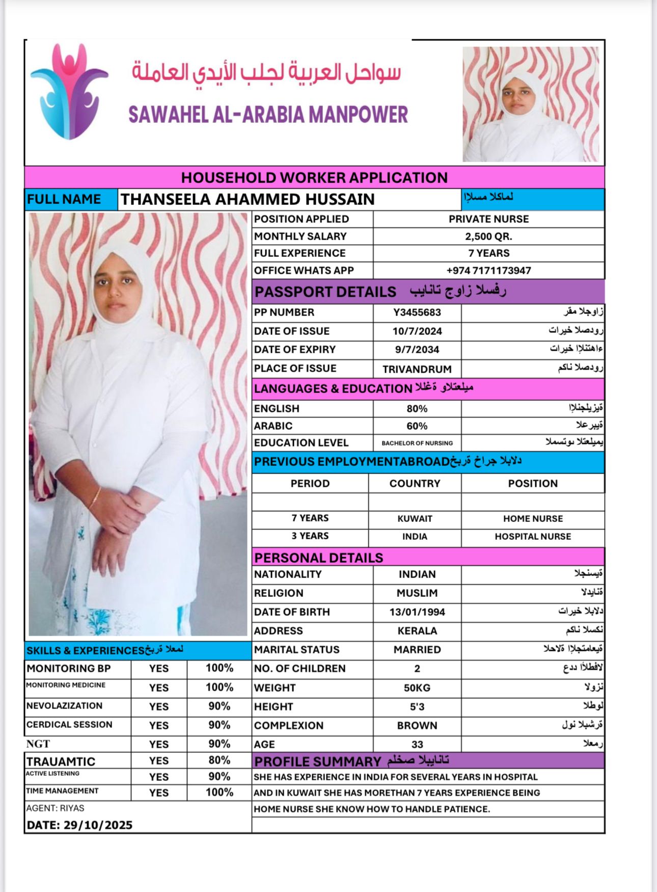 Welcome Are you looking for a driver, nurse, house manager, cleaner, nanny, secretary, professional workers for companies, security and guard personnel, foreman .... etc. Have you spent a long time looking for a maid? Have you made a great effort to find the right person? But to no avail ... Don't worry, we have the perfect solution to your problem Services…