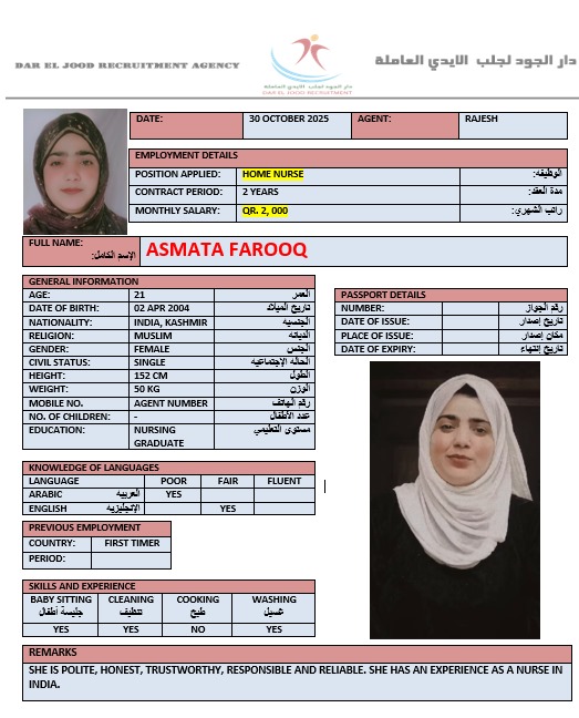 Welcome Are you looking for a driver, nurse, house manager, cleaner, nanny, secretary, professional workers for companies, security and guard personnel, foreman .... etc. Have you spent a long time looking for a maid? Have you made a great effort to find the right person? But to no avail ... Don't worry, we have the perfect solution to your problem Services…