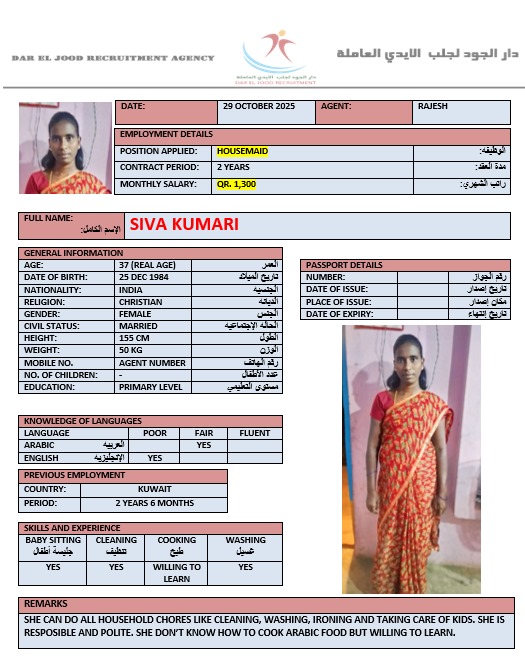 Welcome Are you looking for a driver, nurse, house manager, cleaner, nanny, secretary, professional workers for companies, security and guard personnel, foreman .... etc. Have you spent a long time looking for a maid? Have you made a great effort to find the right person? But to no avail ... Don't worry, we have the perfect solution to your problem Services…