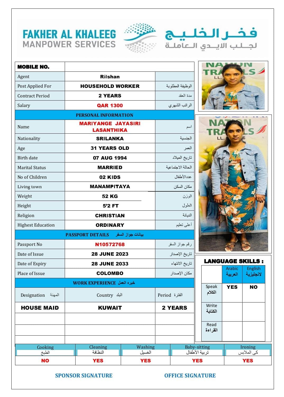 Nationality Sri Lanka