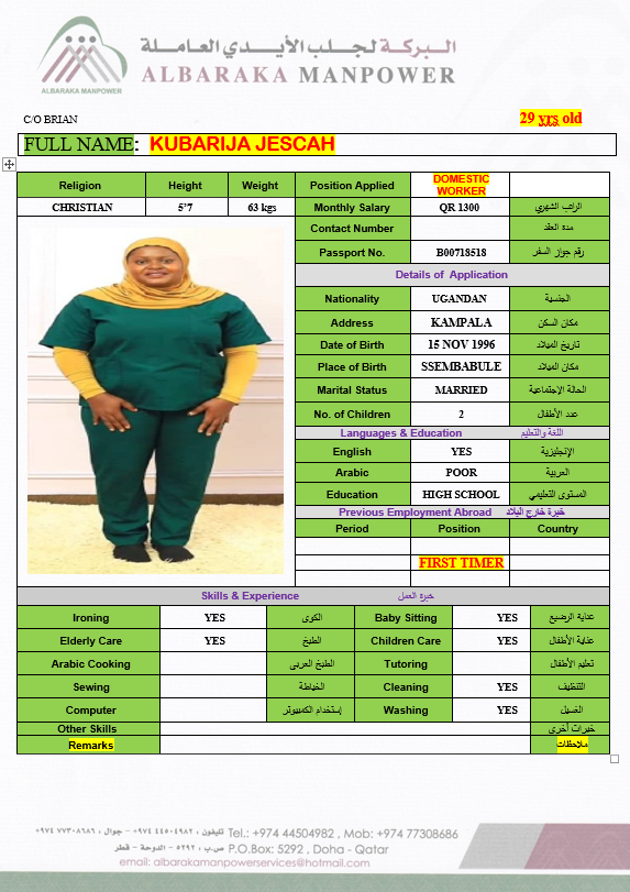 Name - English JESCAH KUBARIJA