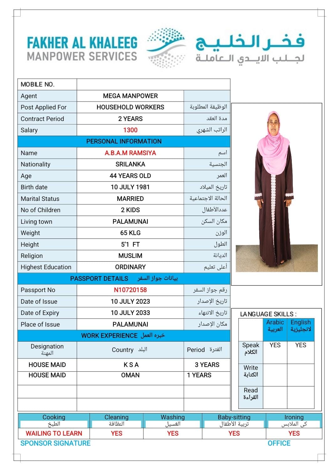 Welcome Are you looking for a driver, nurse, house manager, cleaner, nanny, secretary, professional workers for companies, security and guard personnel, foreman .... etc. Have you spent a long time looking for a maid? Have you made a great effort to find the right person? But to no avail ... Don't worry, we have the perfect solution to your problem Services…