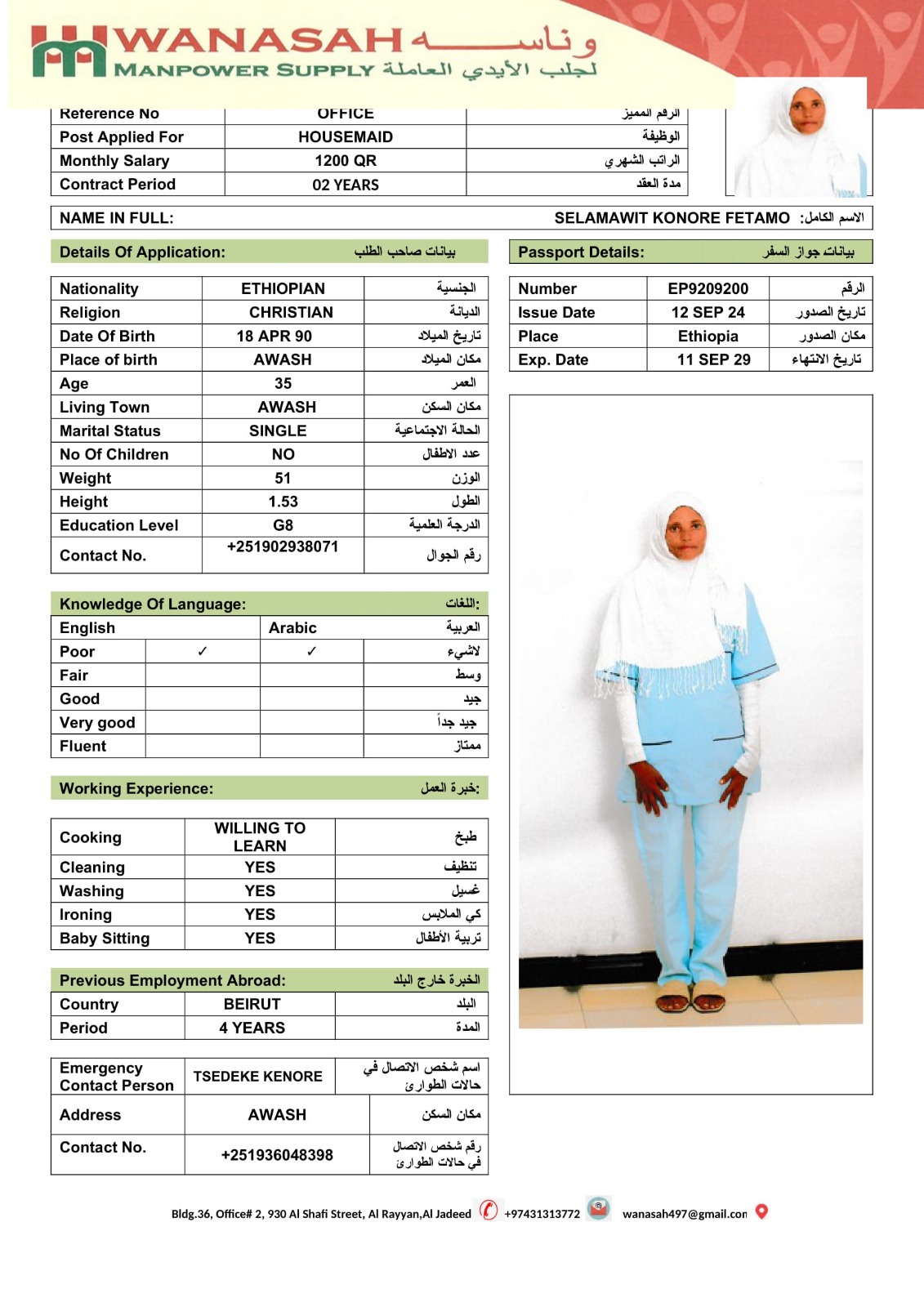 Welcome Are you looking for a driver, nurse, house manager, cleaner, nanny, secretary, professional workers for companies, security and guard personnel, foreman .... etc. Have you spent a long time looking for a maid? Have you made a great effort to find the right person? But to no avail ... Don't worry, we have the perfect solution to your problem Services…