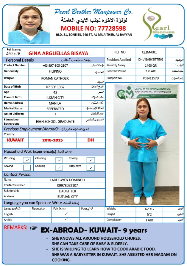 Name - English GINA ARGUELLAS BISAYA